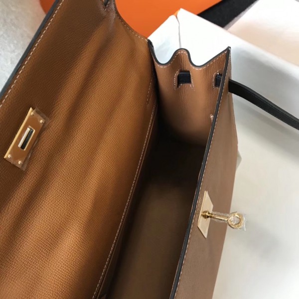 Hermes Bi-color Kelly 32cm Epsom Bag Gold/Black GHW