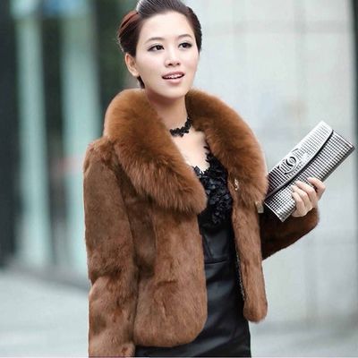 High Faux Rabbit Hair Coat Women's Warm Outerwear Autumn Winter Short Faux Fox Fur Collar Coat Jacket Overcoat