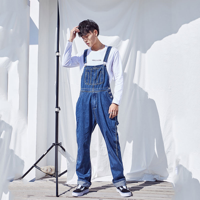 Jeans Men Men's Denim Overalls Men's Overalls Jumpsuit Large size strap Straight pants Blue jeans More sizes 30-44 46