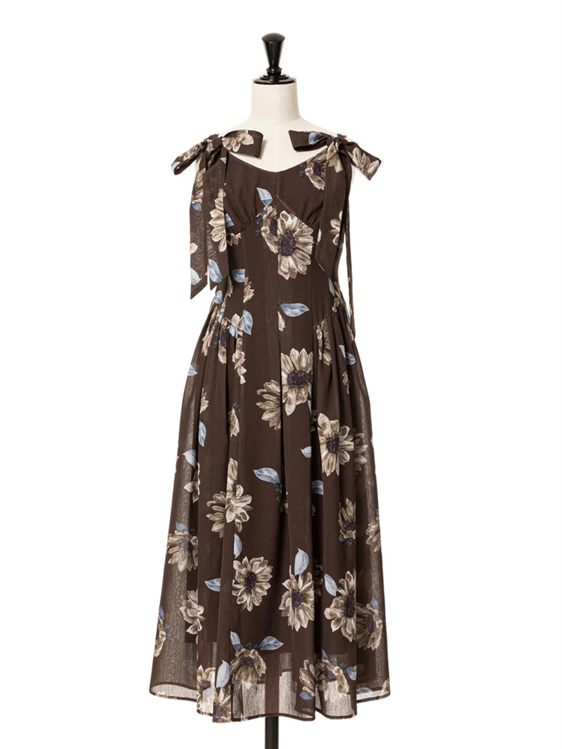 Kuzuwata Summer Japanese Vestidos Print O Neck Sleeveless Bowknot Shoulder Strap Ribbon Dresses Sweet Women's Robe