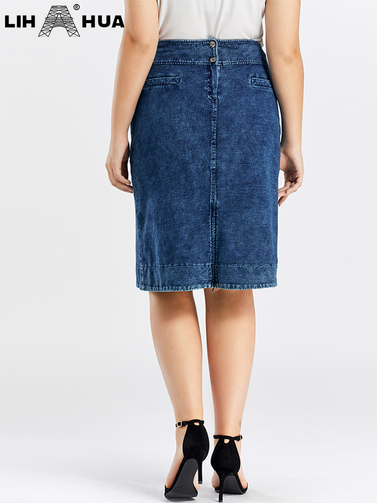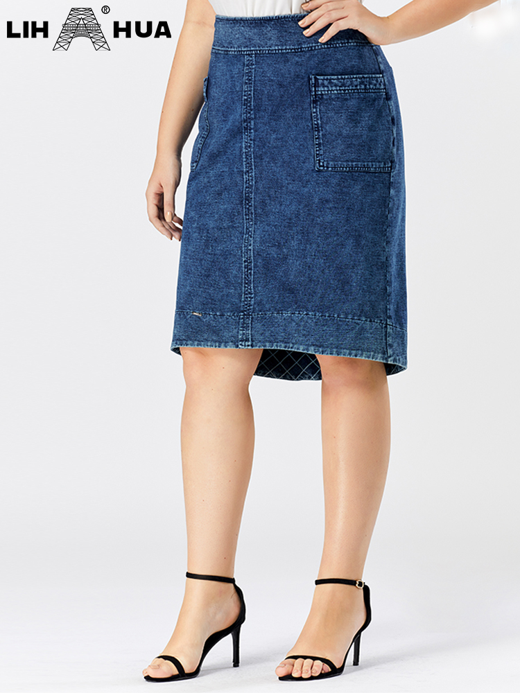 LIH HUA Women's Plus Size Denim Skirt Spring High Stretch Slim Pocket Skirt Casual Skirt