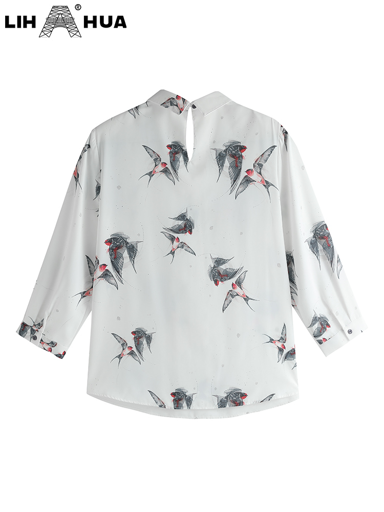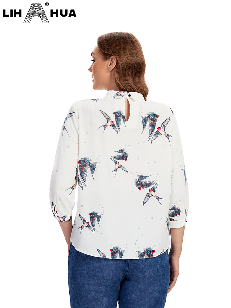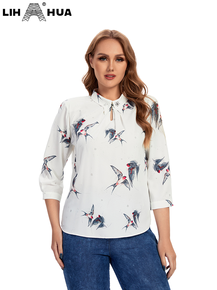 LIH HUA Women's Plus Size T-Shirt Polyester Spring T-Shirt 3/4 Sleeve Print Graphic Loose Top