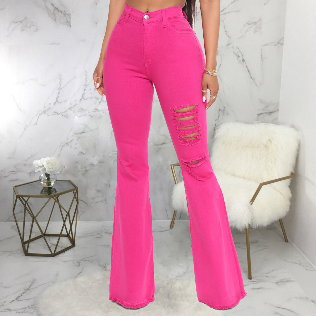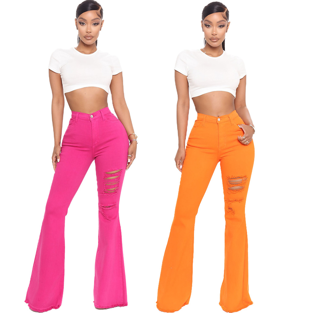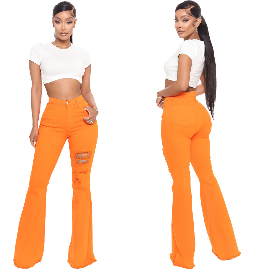 Ladies Jeans Flared Pants Super Stretch Jeans Orange Slim Pants XL Ripped Jeans Women's High Waist Rose Red Jeans Y2K
