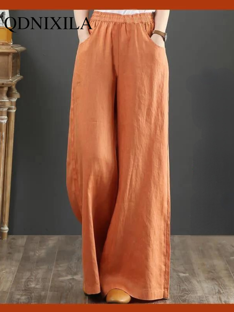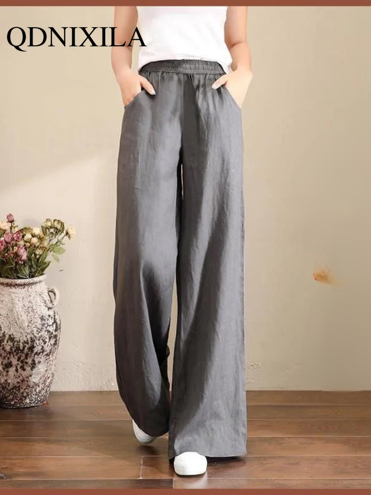 Linen Wide-leg Pants Women's Drawstring Oversize Wide-leg Pants Woman Pants Streetwear Women Drawstring Sweatpants Pants