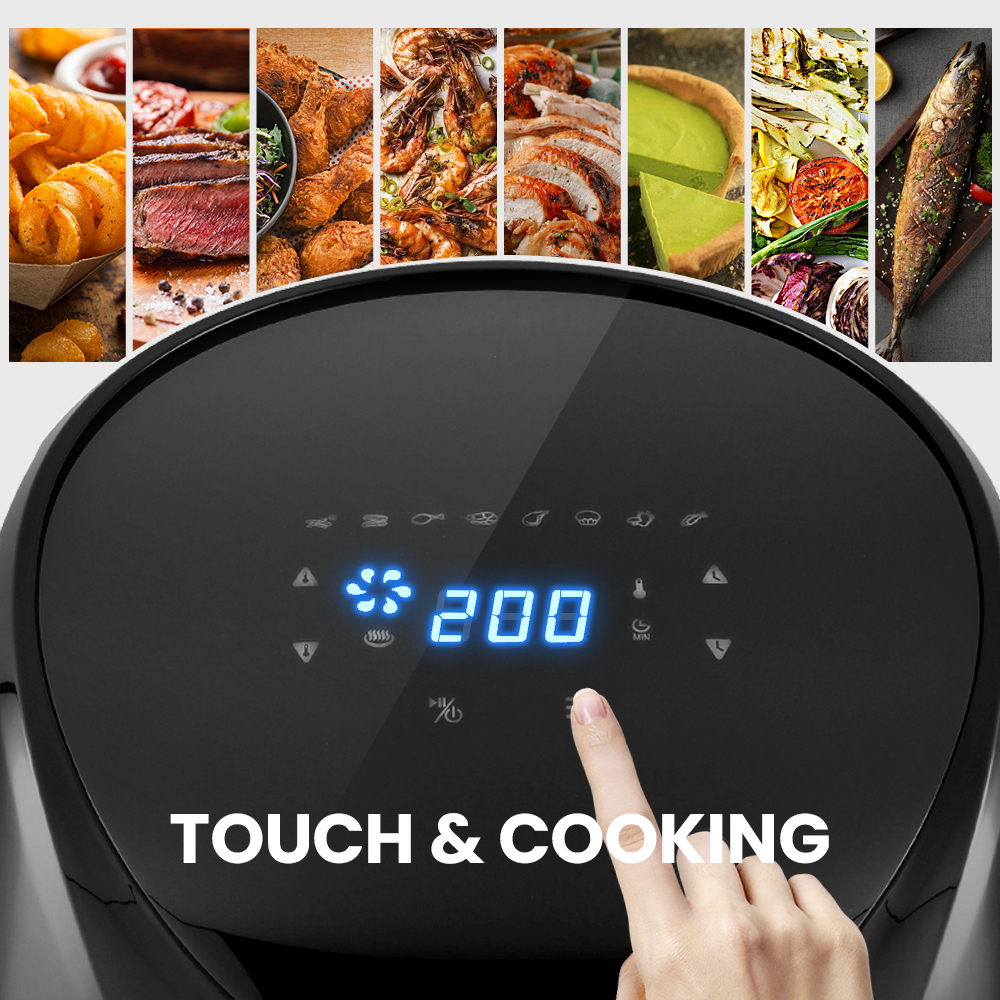 Through the built-in turbine wind wheel to cook 360° degrees uniformly, the cyclone hot air flow can evenly fry and grill food, quickly lock the moisture, and make the food fresh and juicy.