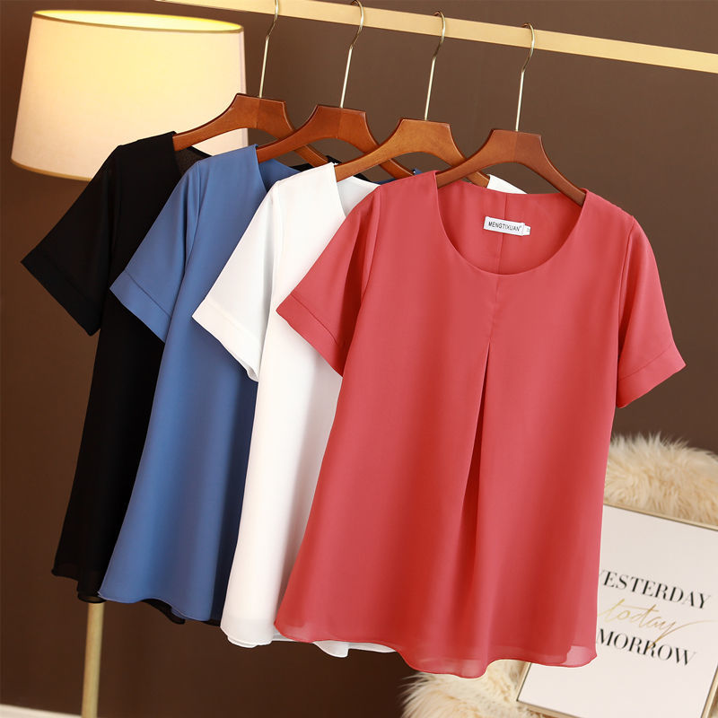 MOYISU Women Blouse Plus Size 6XL Summer Casual O-Neck Short Sleeve Chiffon Shirts FemaleTops