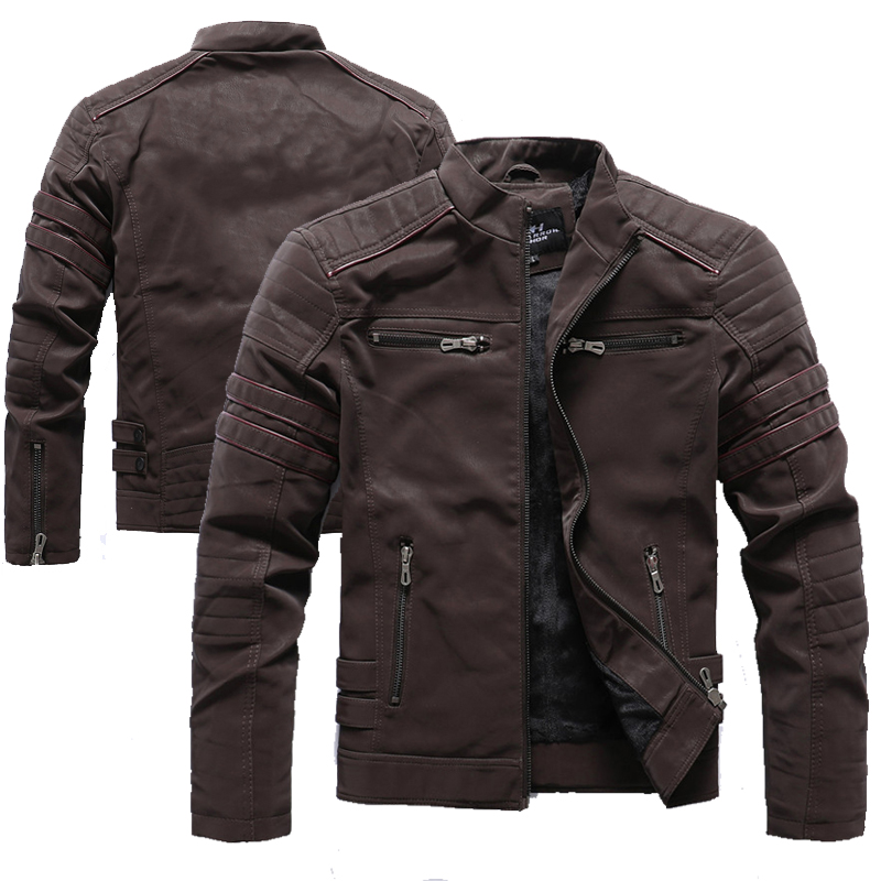 Men's Frosted Leather Jacket Motorcycle Winter Inner Fleece Coat Stand Collar Motor Jackets Slim PU Leather Coats Mens Clothing