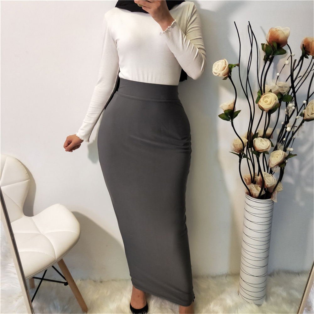 Muslim Women Skirts High Waist Pencil Bodycon Stretch Long Maxi Full Length Skirt Islamic Bottoms Dubai Abaya Kaftan Arab Gown