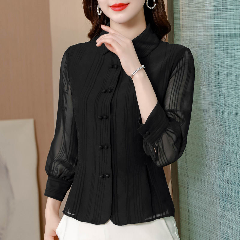 Office Lady Seven-sleeve Shirt Summer Middle-aged Mother Chiffon Blouse Women's Tops Blusas