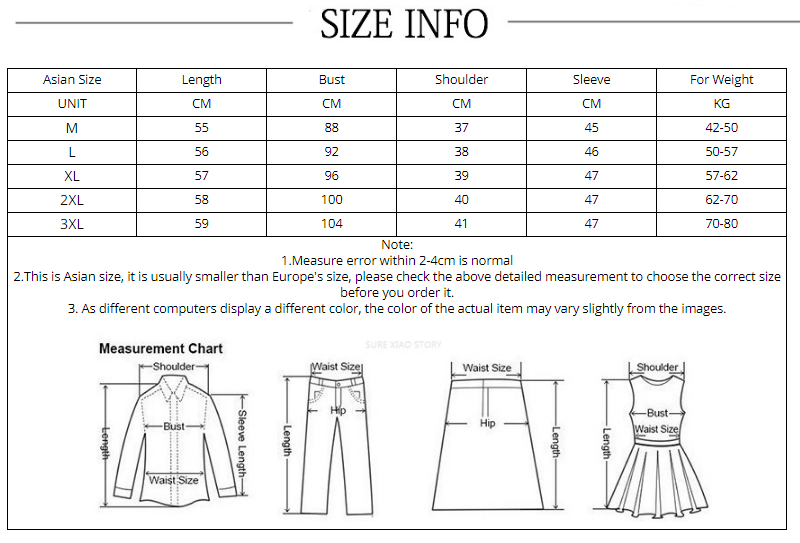 2.This is Asian size, it is usually smaller than Europe's size, please check the above detailed measurement to choose the correct size before you order it.