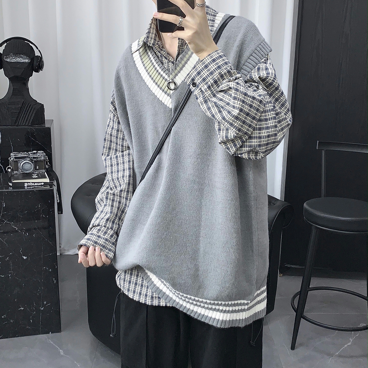 Oversize Sweater Vests Men Patchwork Preppy Style Couple Soft Knitwear Leisure Hipster Unisex Homme Sleeveless Jumpers All-match
