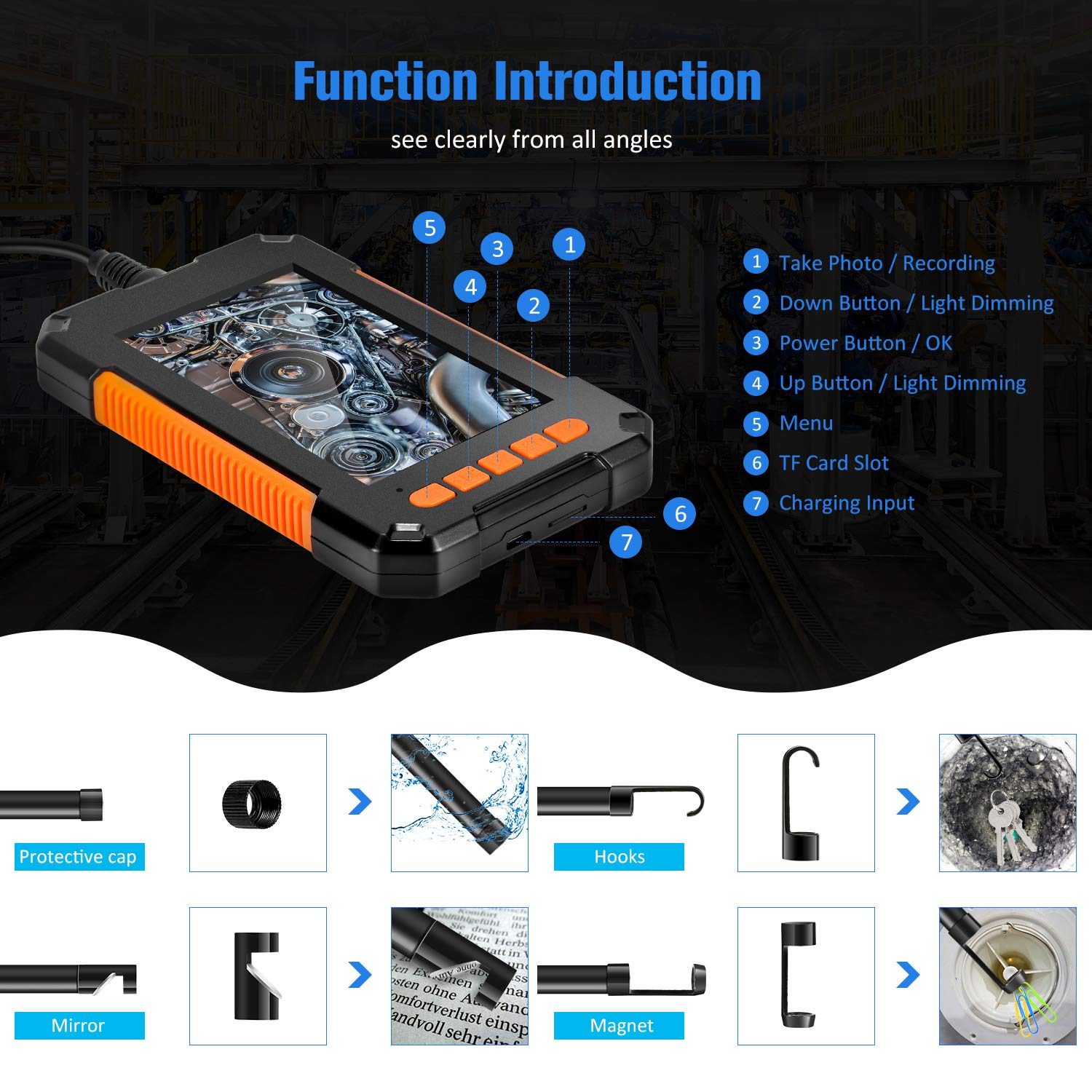 4. [ Easy TO Operate ] : you can use it immediately after power on, don't need to install any APP. No need to use your smartphone to connect the WIFI, so you do not need to worry about dirtying your expensive phone at work too. The Borescope Camera Support taking pictures and recording video.
