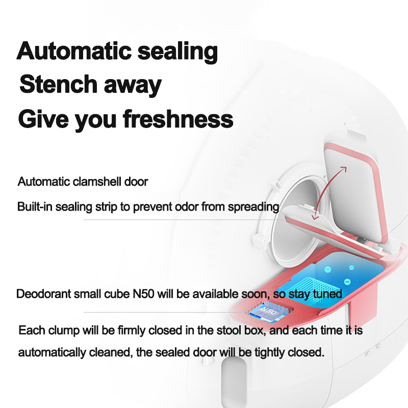 A HANDS-FREE CLEANING EXPERIENCE Auto-cleaning and smart odor removal: Unpleasant odors are no longer an issue in your home. PURA MAX has 3 alternative cleaning modes: auto-cleaning mode, scheduled-cleaning mode, and manual-cleaning mode. You can set the device to scheduled or automatic cleaning mode via the app and PURA MAX automatically removes waste as soon as your cat leaves the litter box. To activate the manual-cleaning mode, simply tap the "Clean" button via the PETKIT app or press the button on the PURA MAX to clean the cat litter box.