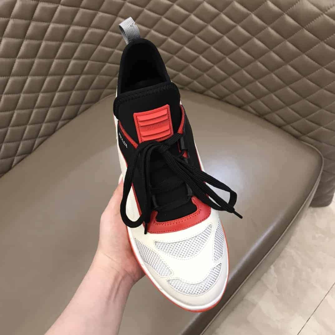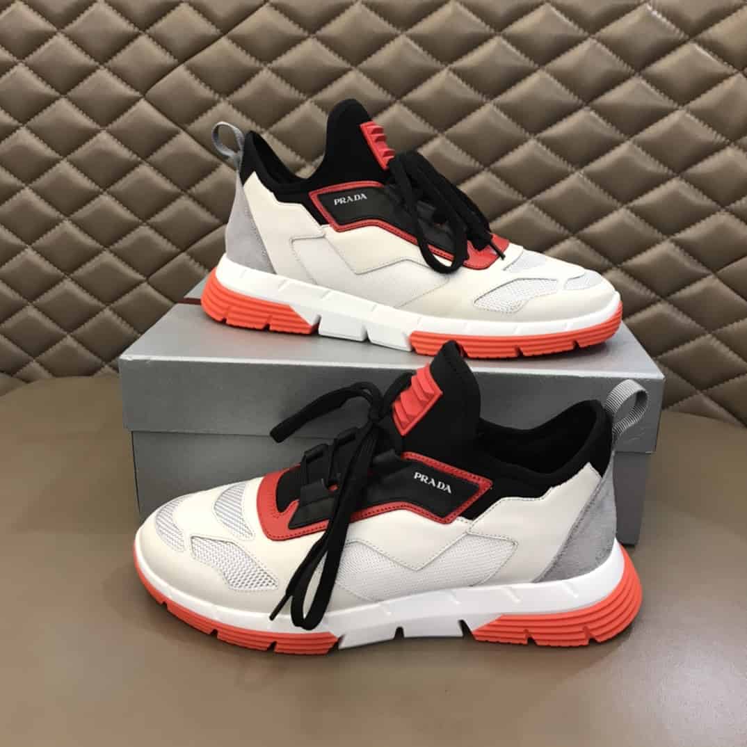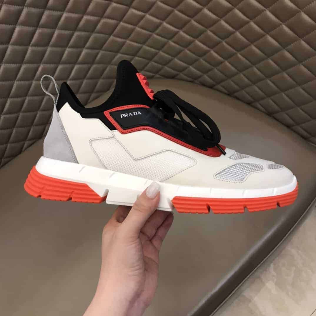 PRADA MACRO RE-NYLON AND BRUSHED LEATHER SNEAKERS – PD023