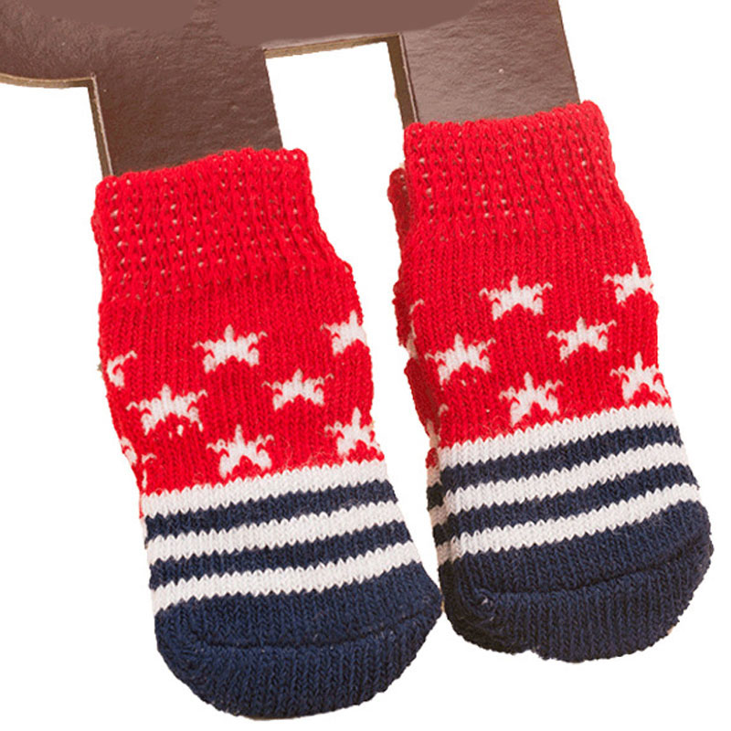 4pcs Warm Puppy Dog Shoes Soft Pet Knits Socks Cute Cartoon Anti Slip Socks