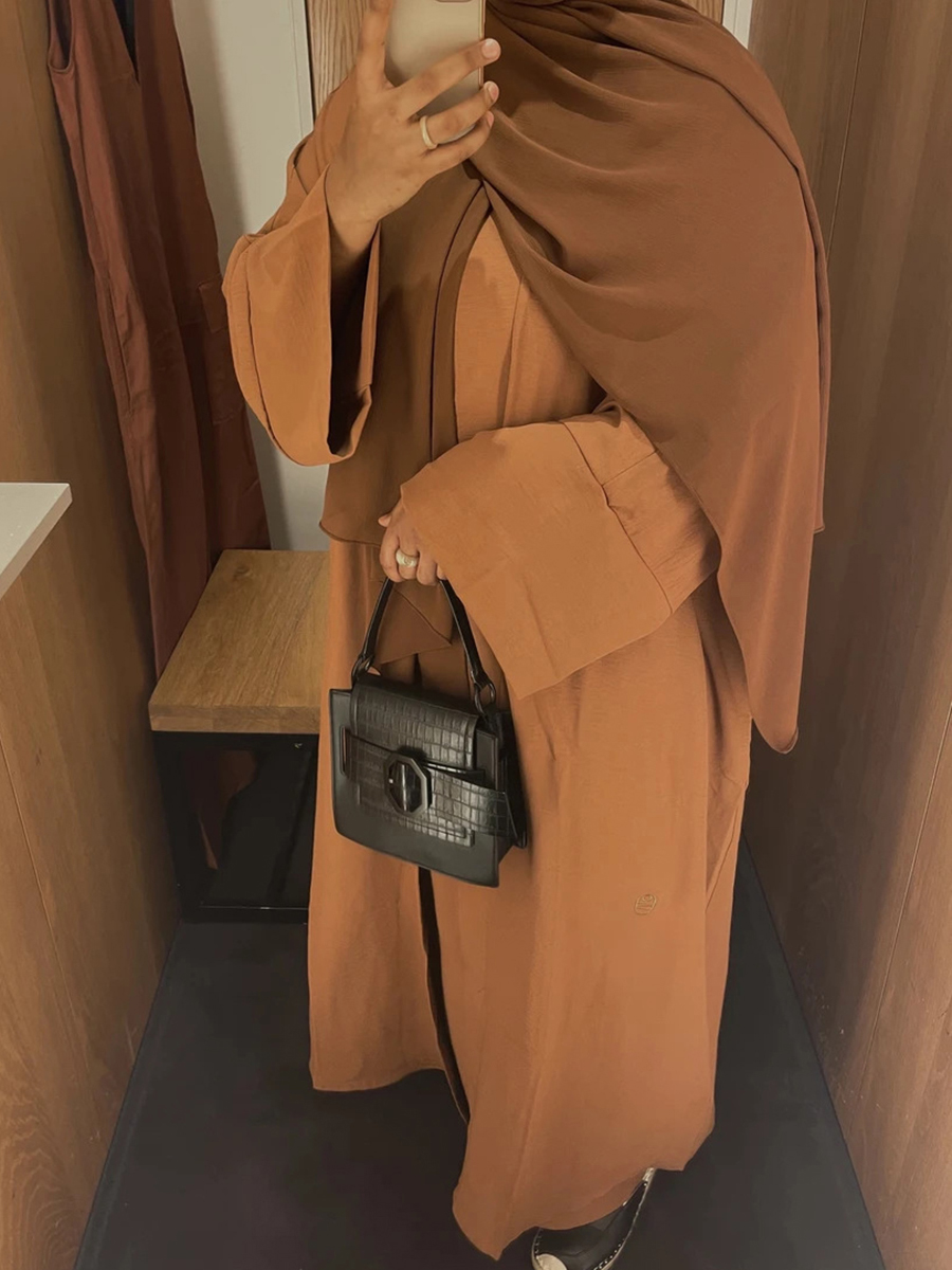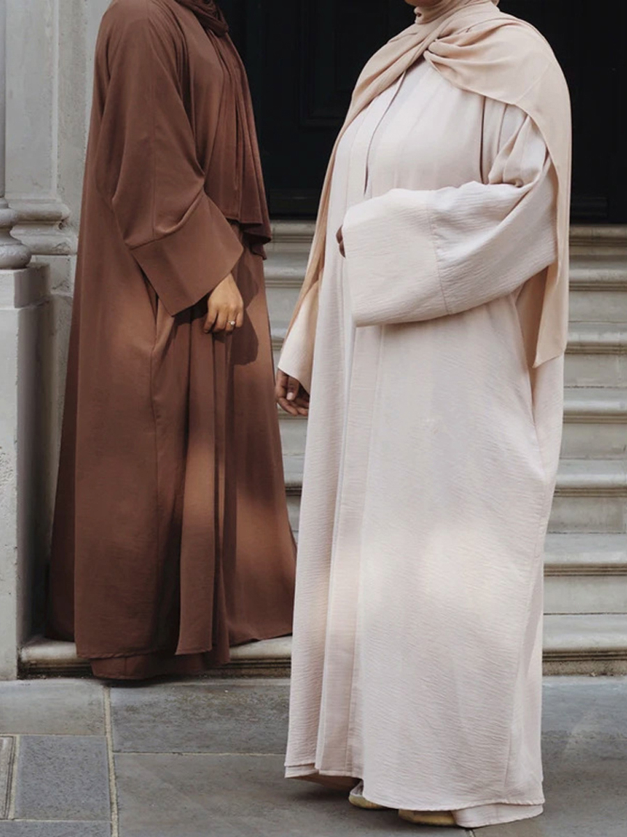 1 x inner sleeveless slip dress, 1 x outer open abaya ( head hijab scarf NOT included )