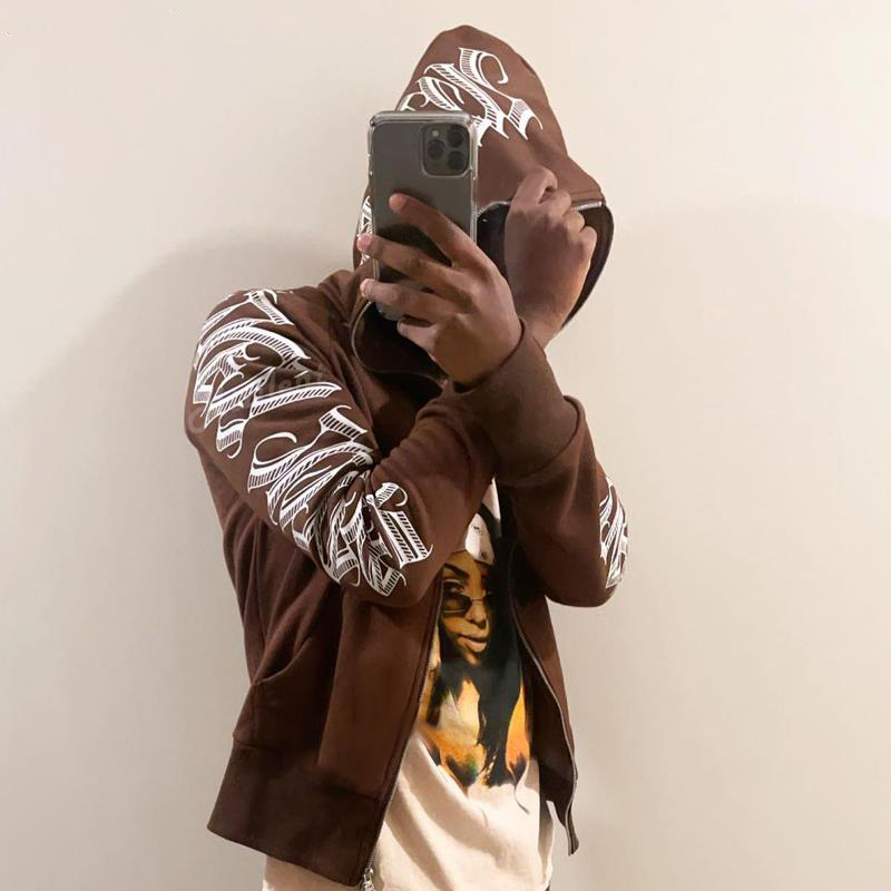 Punk Gothic Letter Print Hoddie Y2k For Men Full Zip Hoodie Women Sudaderas Hombre Unisex Hooded Jackets