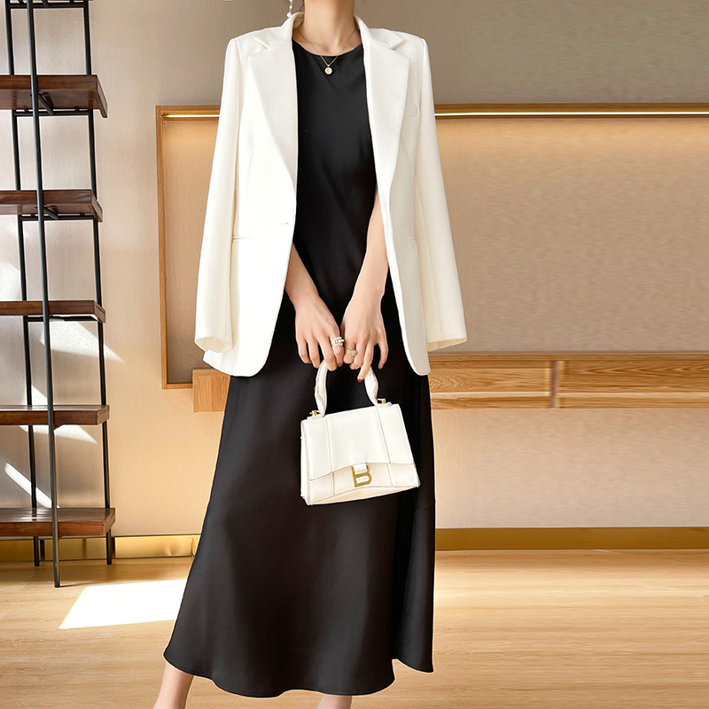 Pure Silk Dress Women's Satin Suspender Long Skirt Mulberry Silk Acetate Slim Fit Round Neck A-Line Skirt
