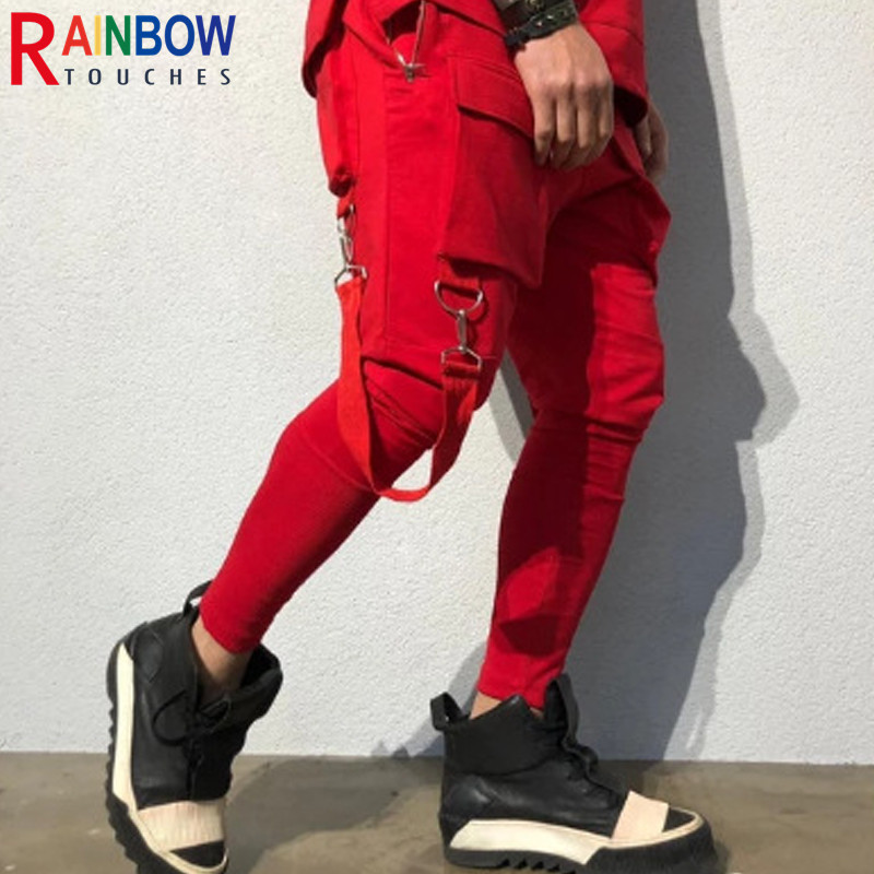 Rainbowtouches Sports Men Stretch Tights Sweat Absorbing And Breathable Fitness Casual Multi Pocket Stitching Cargo Pants Mens