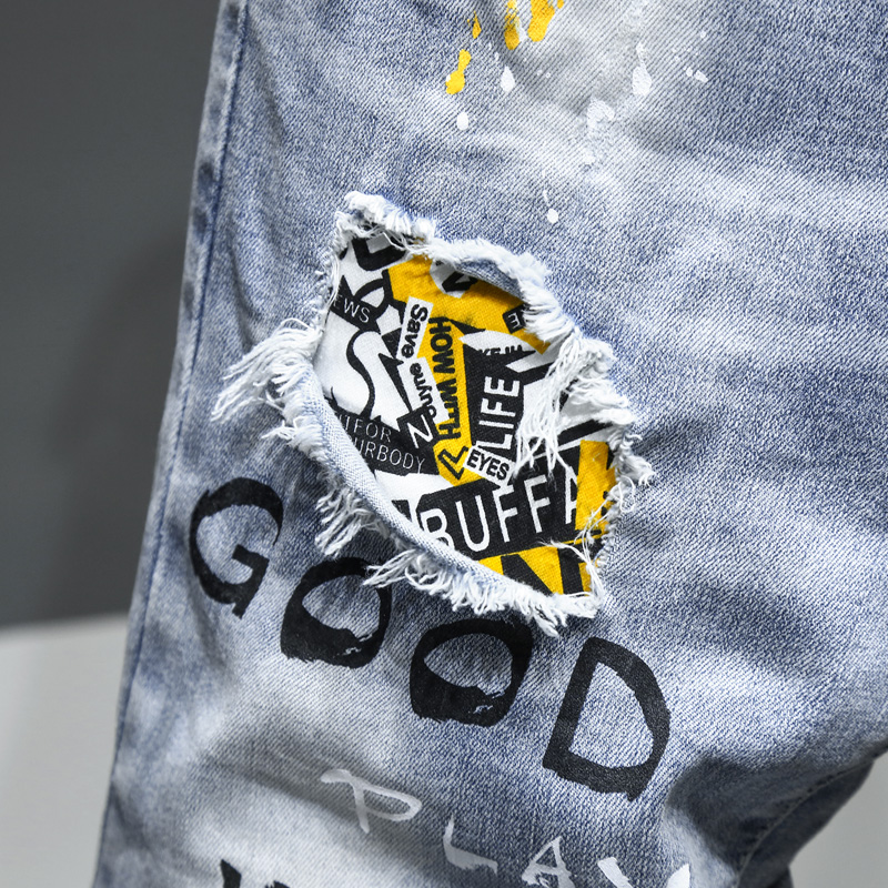 Ripped Men Jeans Jean Homme Pantalon Streetwear Moda Hombre Denim Trousers Biker High Male Patchwork Harem