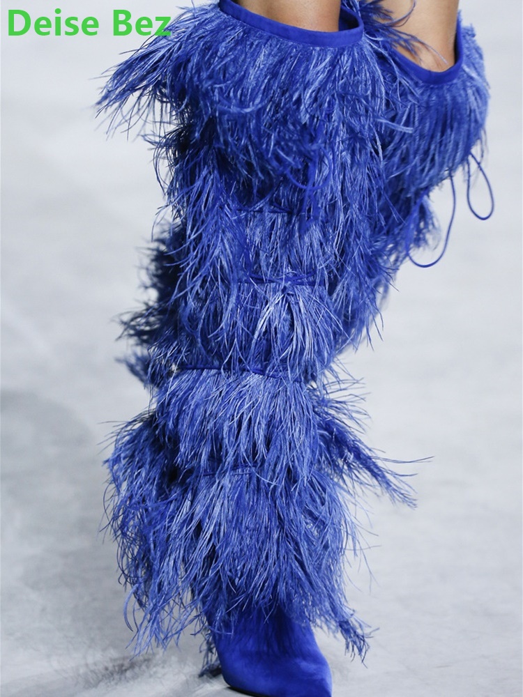 Product Name:Runway Feathers Tassel Long Boots For Women 34-45 Size Solid Pointed Toe Thin High Heel Knee-High Handmade Fashion Sexy Shoes