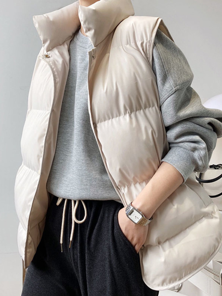 SHENGPALAE Contton Vest Women's Autumn Stand Collar Single Breasted Sleeveless Loose Solid Color Waistcoat
