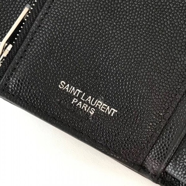 The Compact Tri Fold wallet looks chic in grain de poudre embossed leather, which is finished with interlaced YSL metal initials. Small enough to fit into even a tiny bag or clutch, yet with space for coins, notes and credit cards, this neat wallet is the ultimate mini companion.