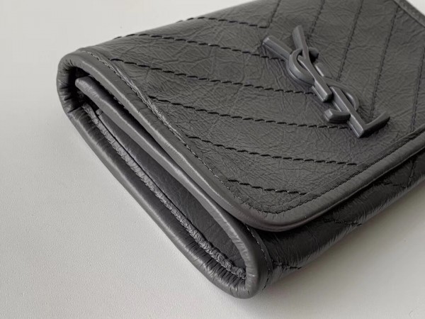 Saint Laurent Niki Large Wallet In Storm Crinkled Vintage Leather