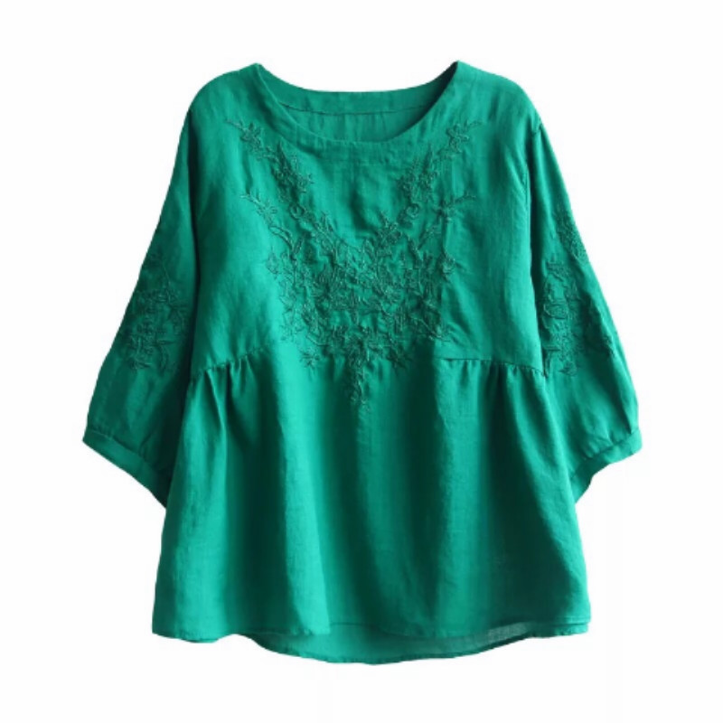 Simple Embroidery Blouse Women Loose Summer Tops Short Sleeve Solid Color O Neck Bottoming Cotton Tees Ladies Clothes