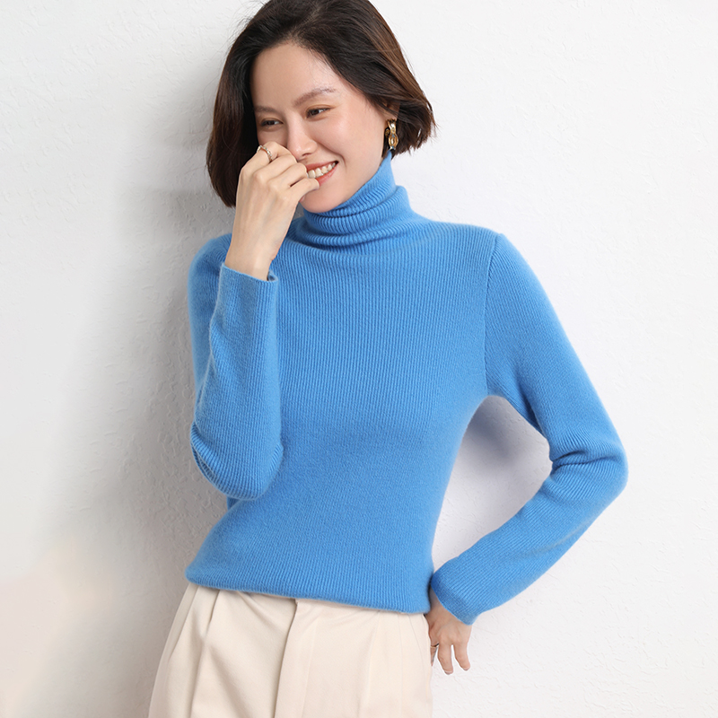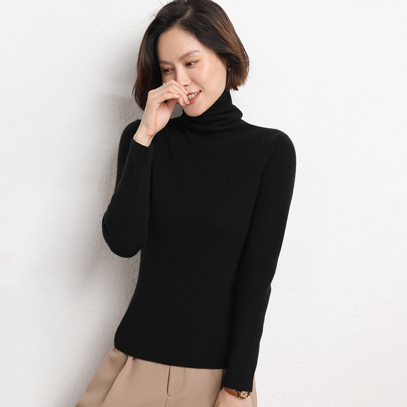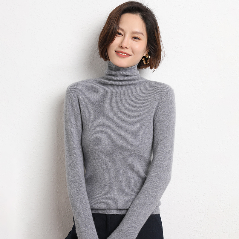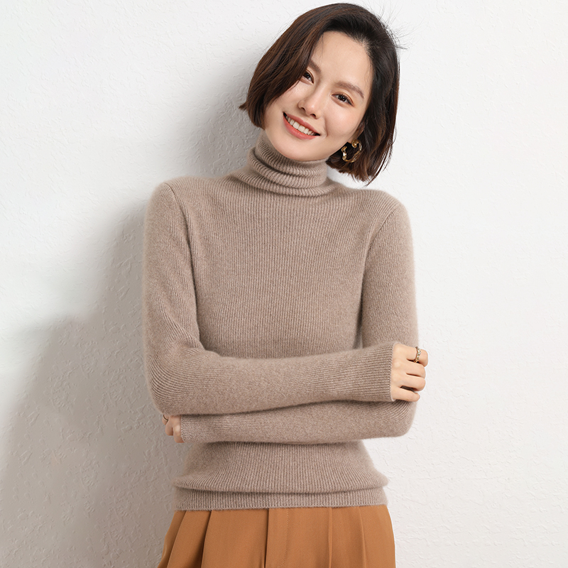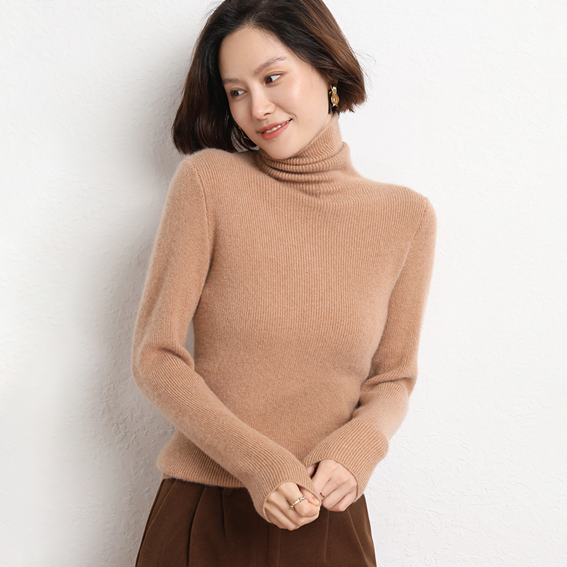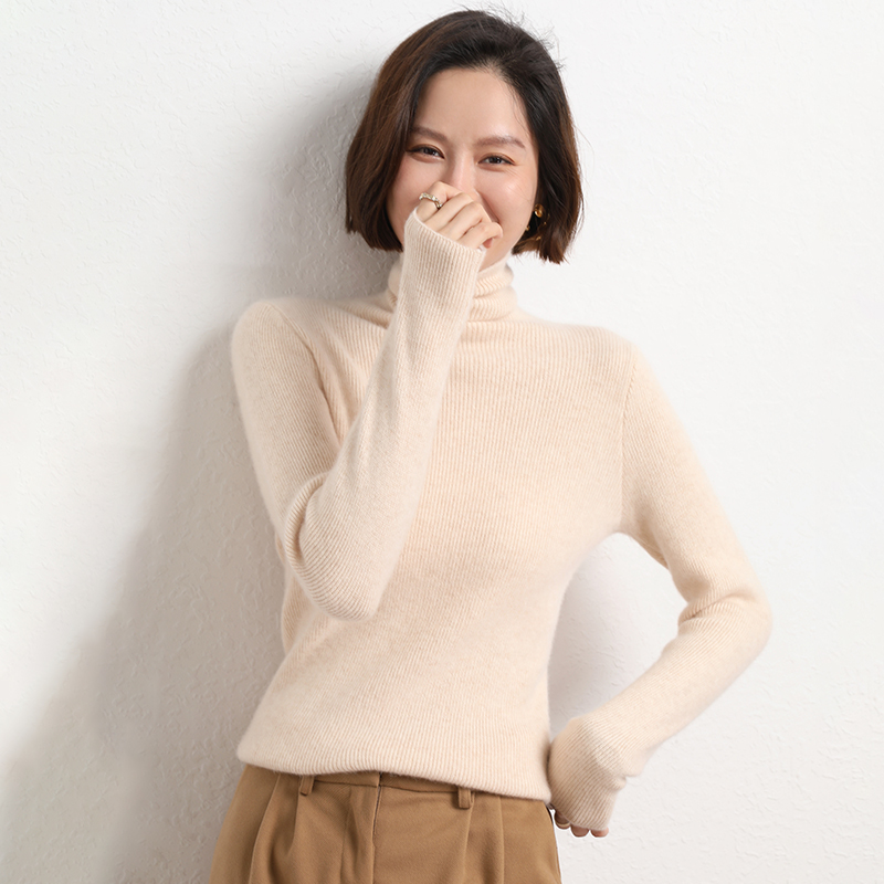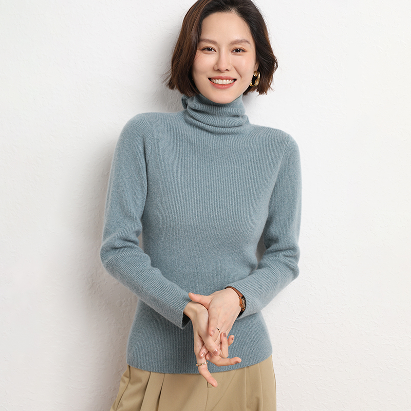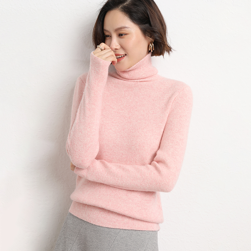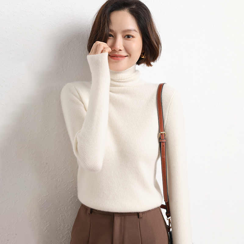 Spring Autumn Women Wool Blend Sweater Casual Striped Pile Collar Pullover Solid Color Knitted Sweater Slim Tops Commuter