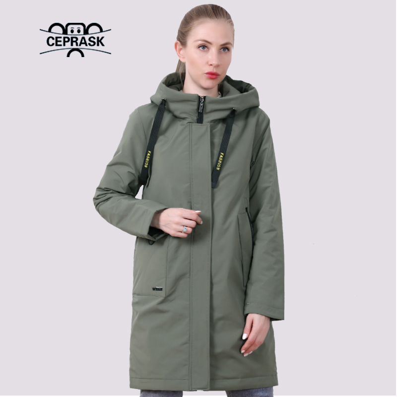 Spring Coat Women Thin Cotton Lined Warm Female Jacket Autumn Plus size Parka Long Quilted Hooded Outwear