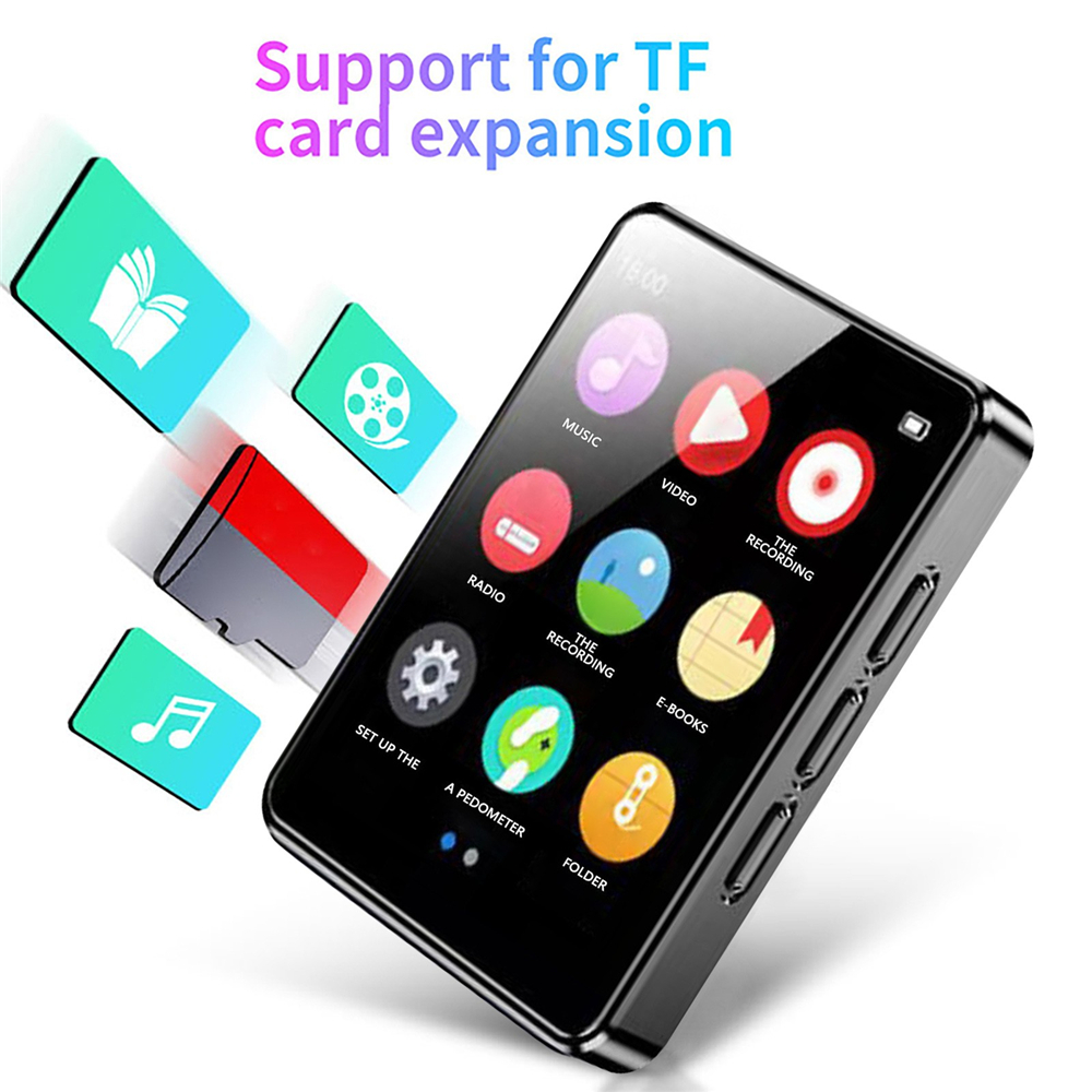 The bluetooth mp3 player has a 1.8 inch screen, mirror finish and zinc alloy design. Lock screen with one click.
