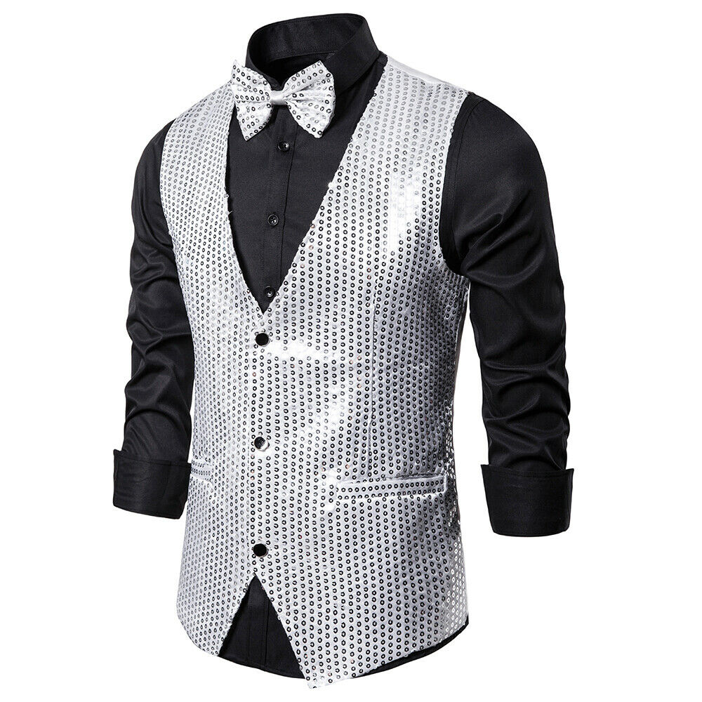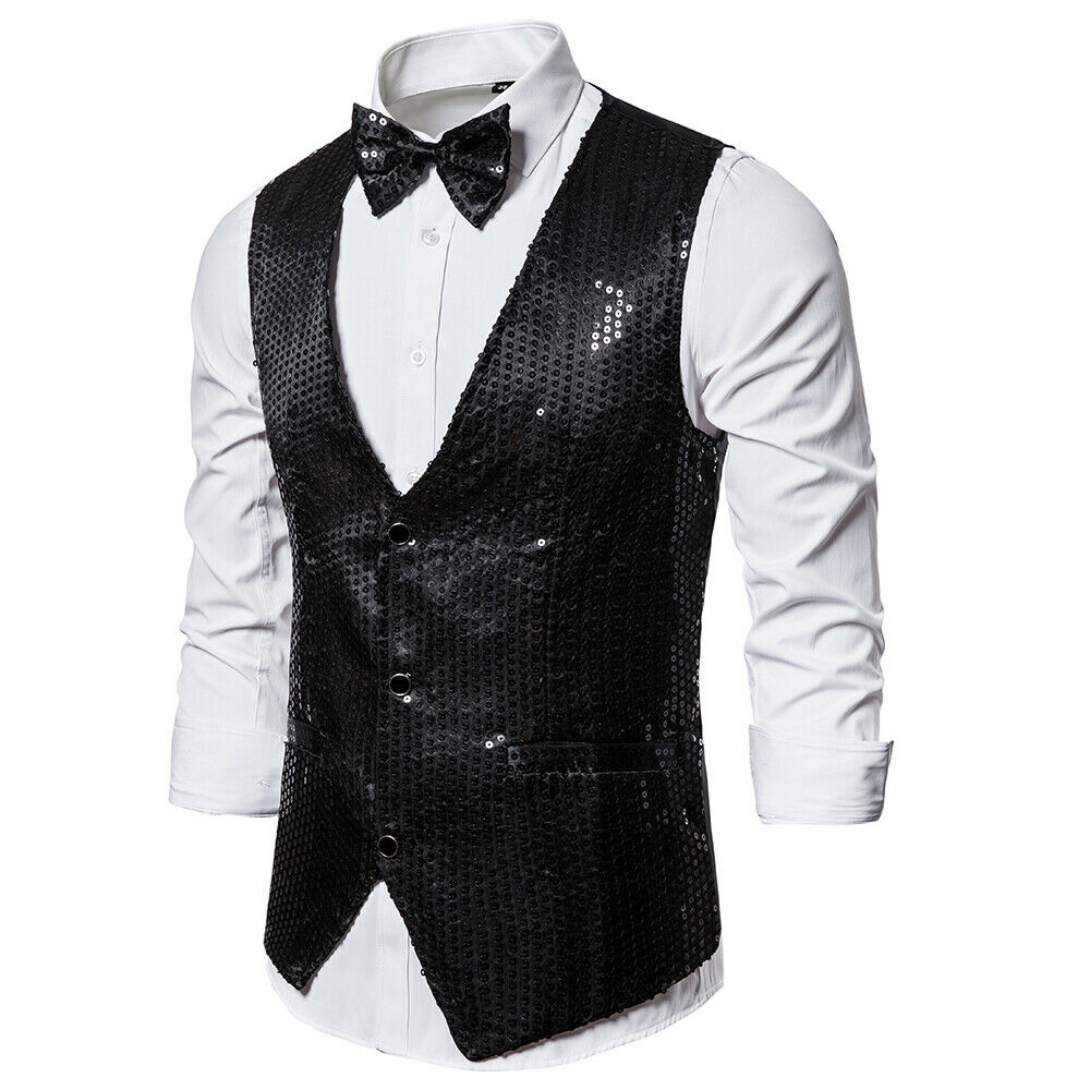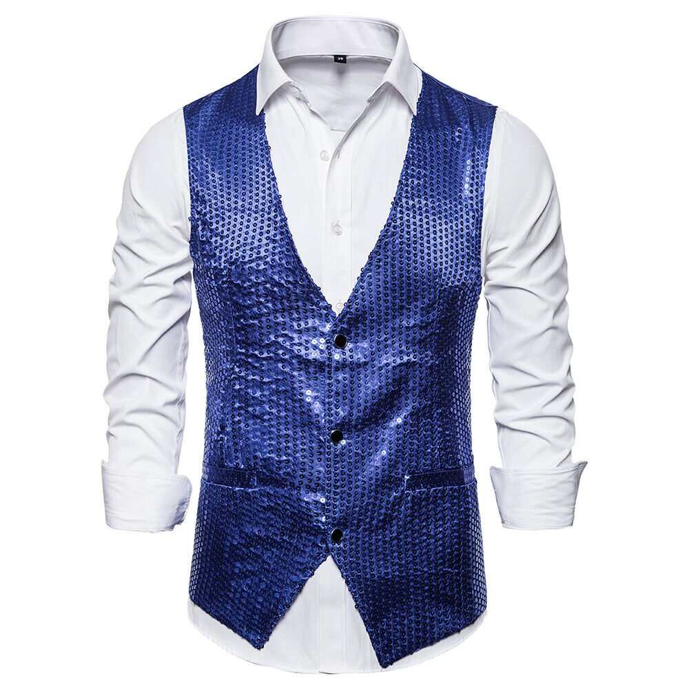 Stylish Men's Blazer Vest Coat Formal Slim Shiny Sequin Glitter Embellished Blazer Jacket Sequin Party Stage Coat