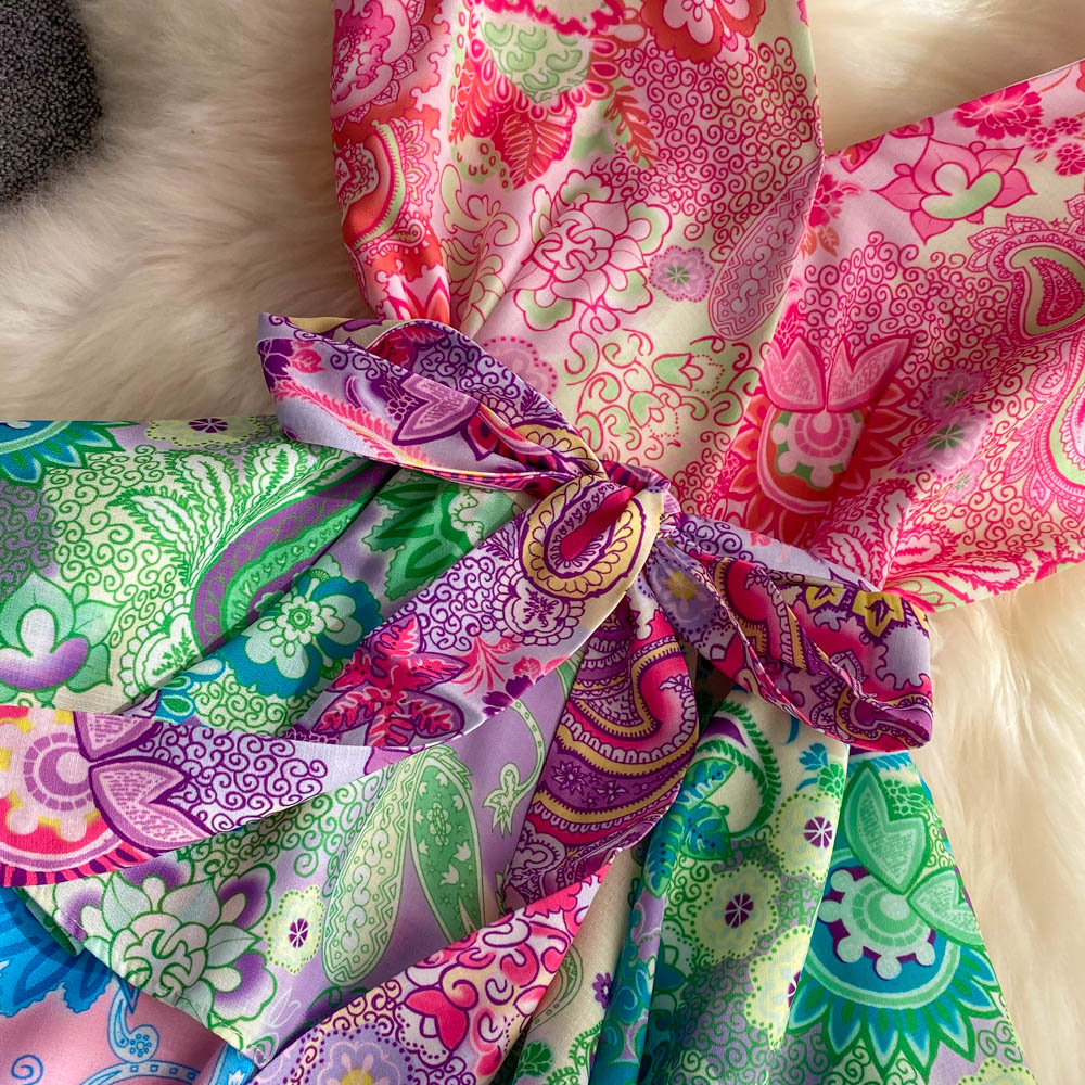 Summer Beach Cascading Ruffles Cake Dress Runway Women's V-Neck Sleeveless Flower Printed Holiday Party Long Robes Vestidos