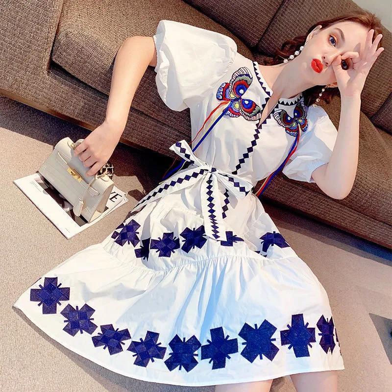 Summer Ladies Dress Large Size Women's Retro Style Temperament French Style Dress