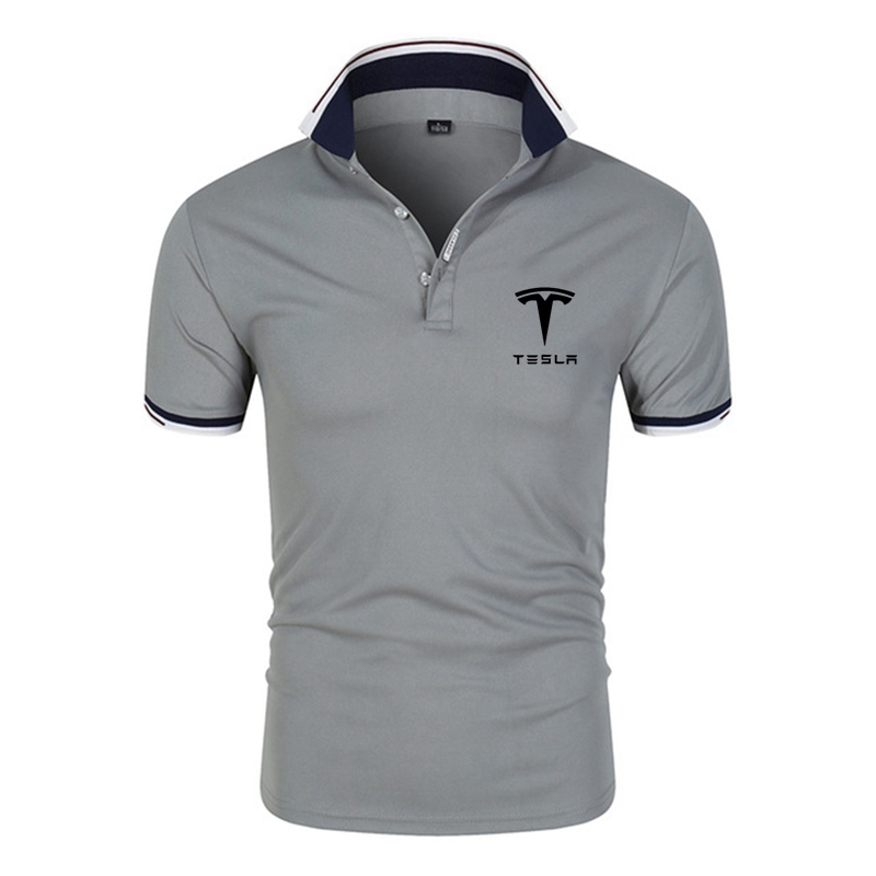 Summer Tesla Men's Casual Short Sleeve Polo Shirt Business Clothes Tee Male Breathable Polos Tops Men