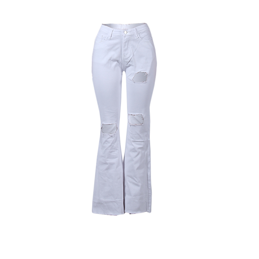 Summer Women's Pants White High Waist Female Denim Bell Bottom Casual Ripped Jeans For Women Mom Jeans Flare Skinny Jeans Woman