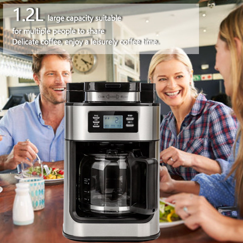 TABELL Coffee Maker Machine 2 In1 Automatic Coffee Machine Drip LED-Display Home Electric Bean Grinder Keep Warm Espresso