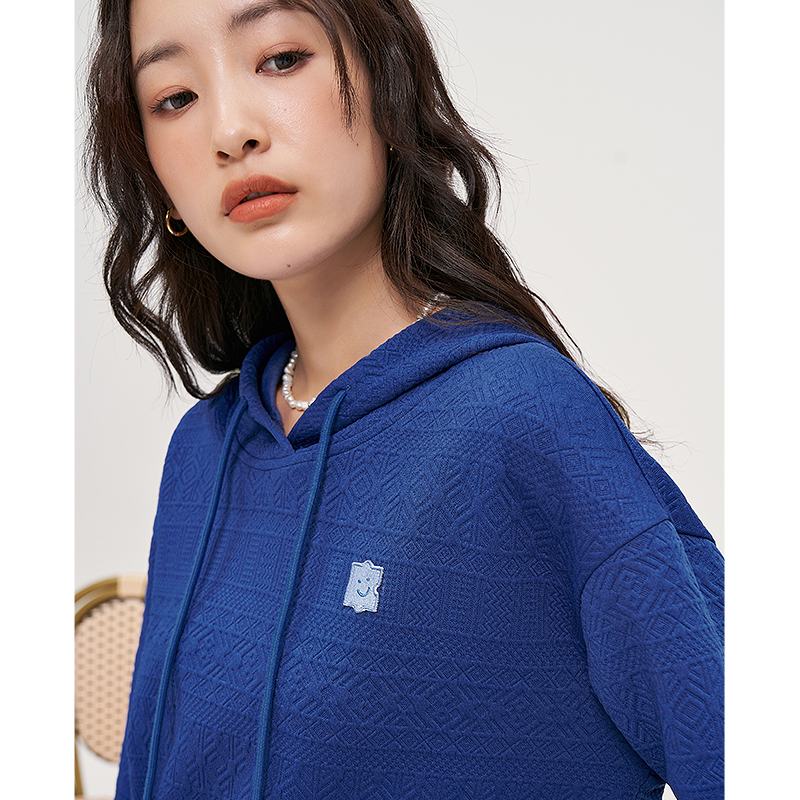Toyouth Women Sweatshirts with Hat Autumn Long Sleeve O Neck Loose Hoodies 3D Geometric Klein Blue Chic Casual Streetwear P