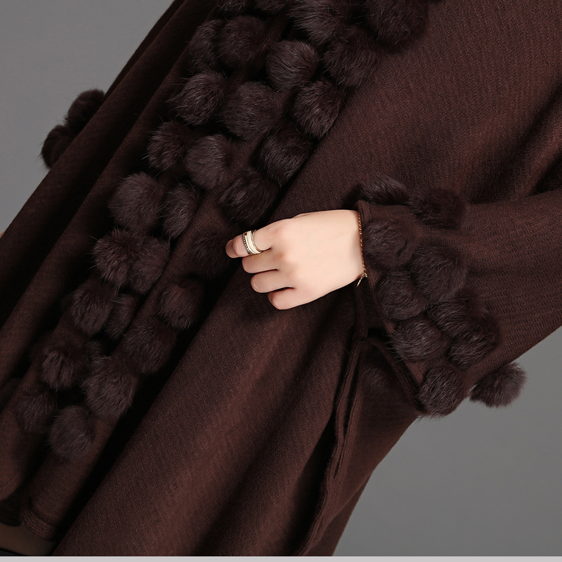 Trend Women Rabbit Fur Poncho Shawl Coat Long Knit Cashmere Cape Fur Sweater Pashmina Autumn Winter New