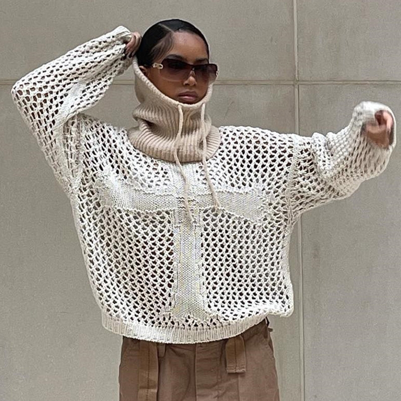 The stylish hollow knit pullovers gives a playful feeling, looks more young and energetic.