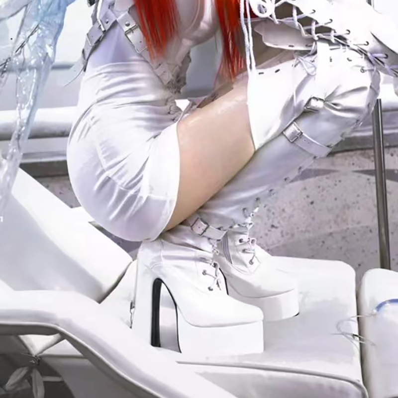 White Patent Leather Lace Up Round Head Platform Chunky High Heel Over The Knee Boots Solid Narrow Band Buckle Women'sshoes