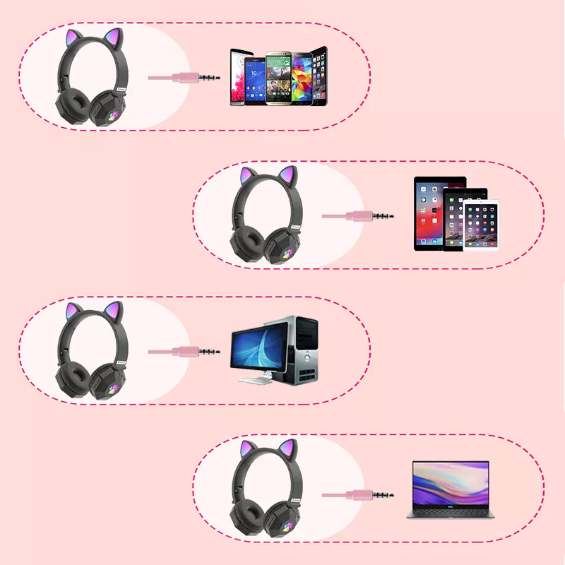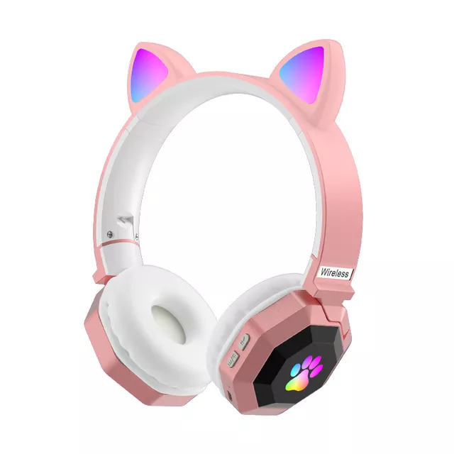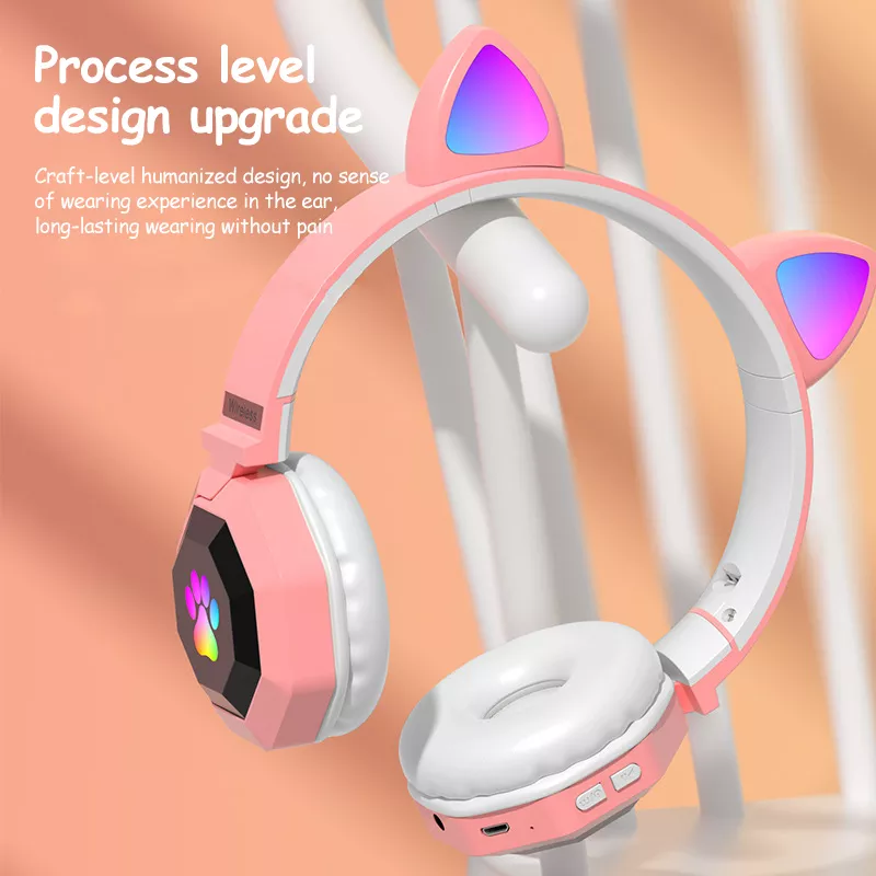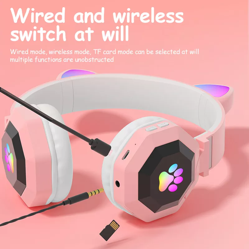 Wireless Headphone cute cat ear Bluetooth 5.0 Headset RGB stereo music Helmet Mobile phone with Micrphone Earphone Children Gift