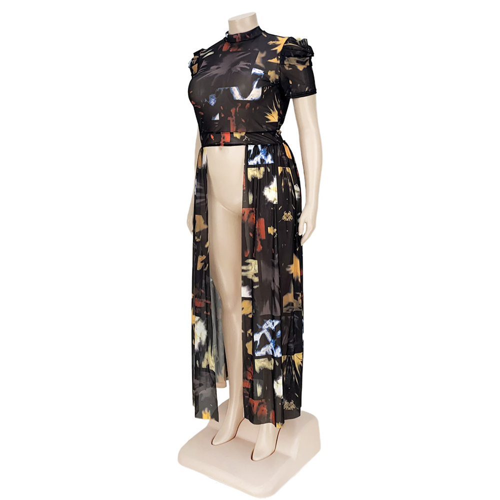Wmstar Plus Size Plus Size T-Shirts Print Women Tops Puff Short Sleeve Mesh See Through Sexy Chiffon Bulk WholeDropshipping