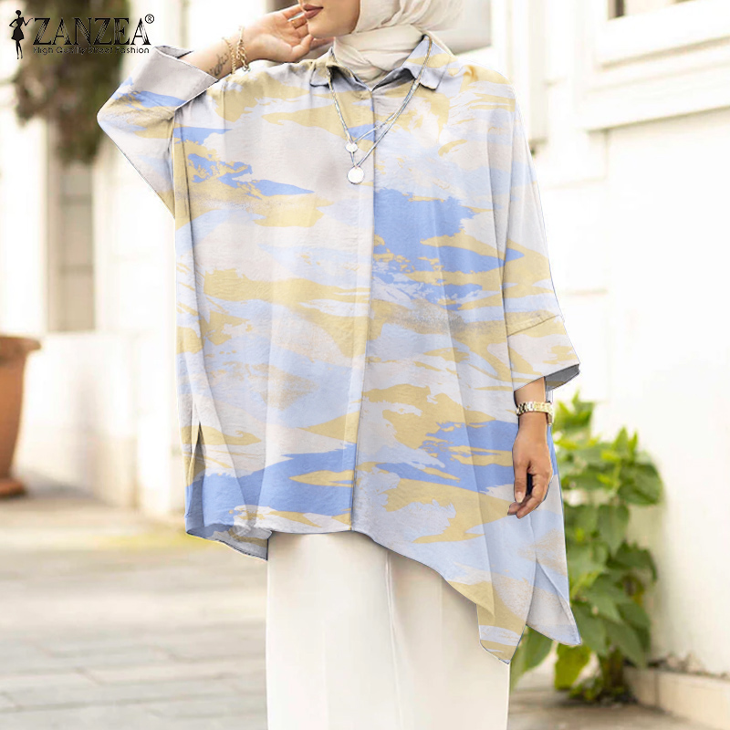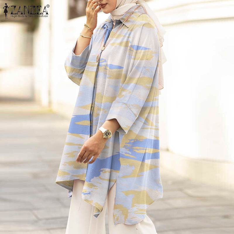 Women Bohemian Tie-dyed Shirt Spring Long Sleeve Muslim Abaya Blouse ZANZEA Vintage Loose Tunic Tops Casual Islamic Clothing