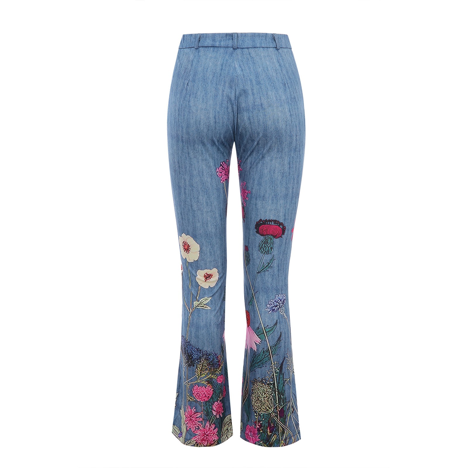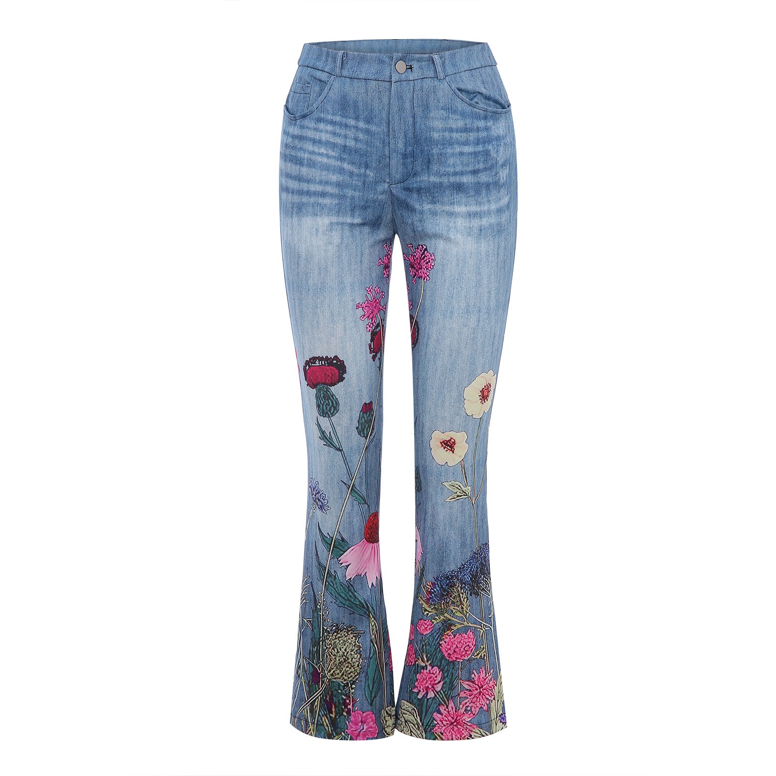 Women Jeans Pants High Waist Flower Printed Denim Women Flare Pants Elastic Female Jeans Pantalon Femme Plus Size Clothing