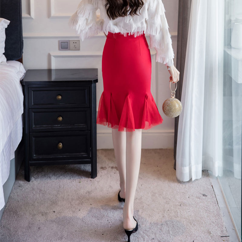 Women Pencil Skirts High Waist Mesh Patchwork Mermaid Skirt Bodycon Sexy Skirt Elegant Stretch Skirts Female