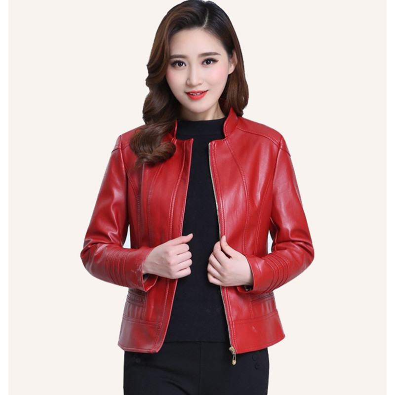Women leather jacket Casual Women 6XL coat PU spring fall women clothing Washed leather short top coat
