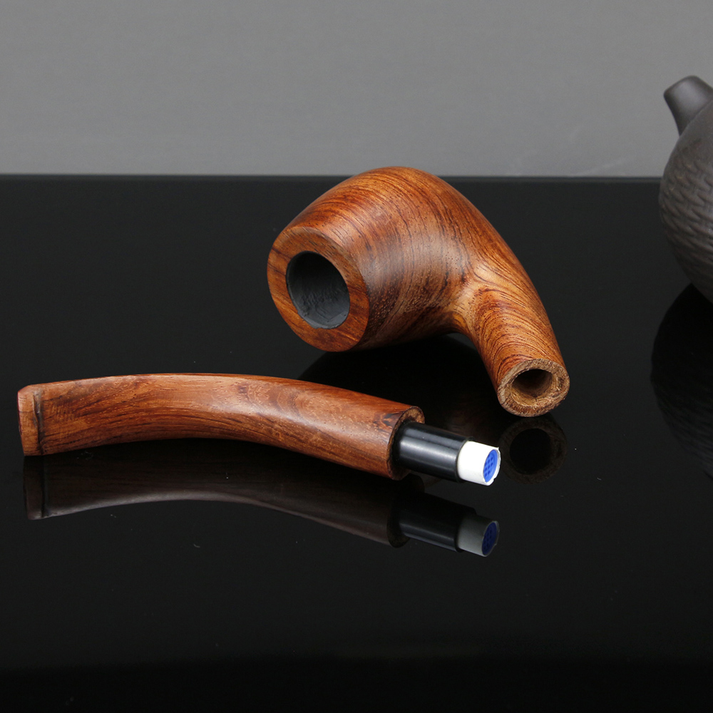 Wood Smoking Pipe Traditional Bent Tobacco Pipe 9mm filter Red Sandal Wood Pipe Handmade Smoke Pipe