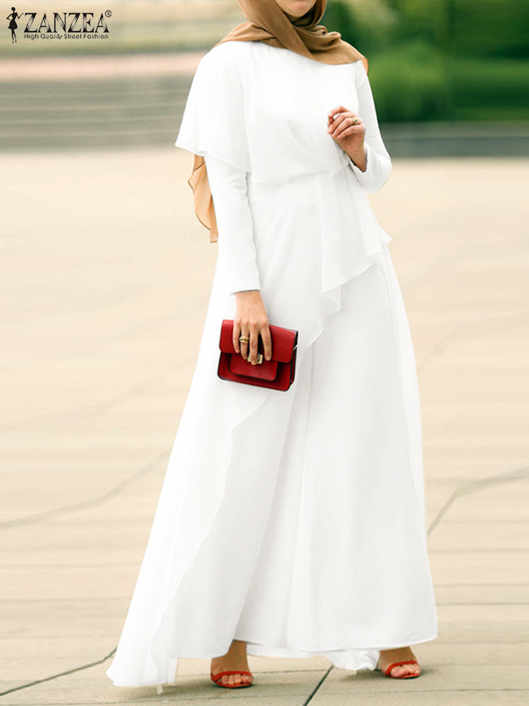 ZANZEA O-Neck Full Sleeve Wide Leg Romper Women Summer Lace Patchwork Muslim Jumpsuit Elegant Solid Long Party Overall Dungaree